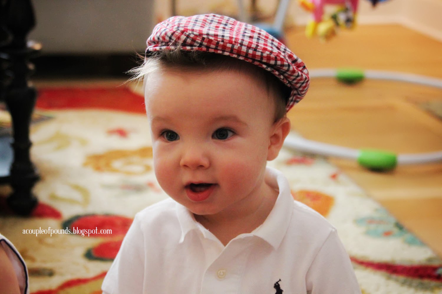 He has a temper and stiffens his arms and clenches his fists when he gets mad! We shouldn’t laugh, but it’s too cute.